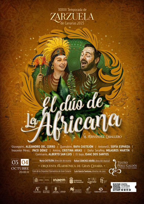 EL DUO DE LA AFRICANA Libro de Miguel Echegaray Música de Manuel Fernández Caballero Antonelli...Amanda Serna Giuseppini...Antonio Adame Querubíni...Gerardo Meré Pérez...Javier Ferrer El Bajo...Elu Arroyo Amina...Mª Luisa Pönicke Doña Serafina...Amparo Madrigal Inspector...Francisco Montesdeoca Bailarines Alfredo y Nadia Coral Regina Coeli Coral Lírica de Las Palmas Orquesta Sinfónica de Las Palmas Director Juan José Ocón
