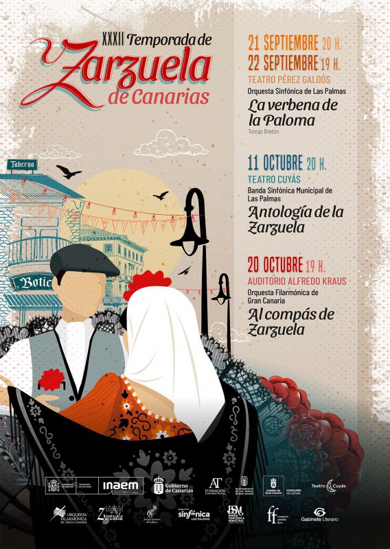 LA VERBENA DE LA PALOMA Ampliada con fragmentos de La Revoltosa Susana...Rosa Ruiz Julián...Cristóbal Viñas Señá Rita...Adelina Valido La Cantaora y Soledad...Laura de Pinto Casta...Ana Cristina Soage Don Hilarión...Miguel de Grandy Tía Antonia...Concha del Val Don Sebastián...Mario Rodrigo Tabernero...Gerardo Meré Inspector...Pepe Batista Sereno...Luis Bellido Moao 1º...David Mosquera Mozo 2º...Nauzet Valerón Coro del Festival de Zarzuela de Las Palmas de G.C. Ballet Español Danzalarriba Orquesta Sinfónica de Las Palmas Director Juan José Ocón